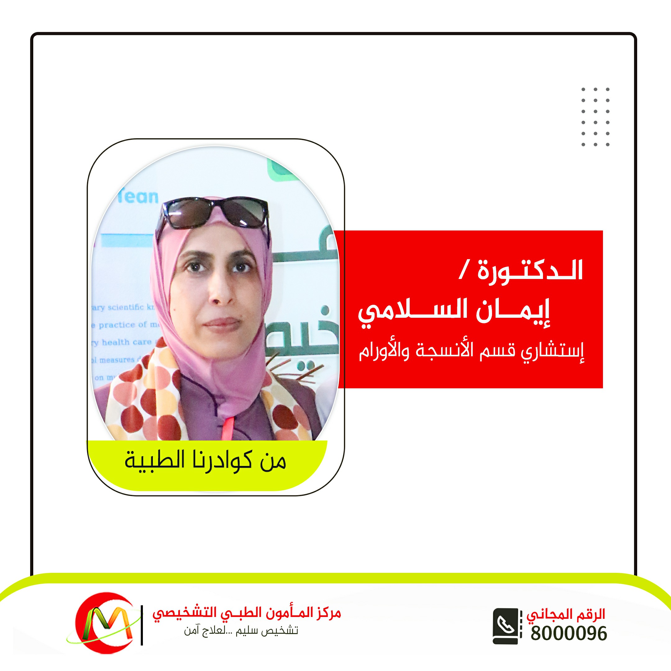 إستشاري قسم الأنسجة والأورام في مركز المأمون الطبي التشخيصي